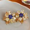 Vintage Pearl Flower Earrings for Women Luxury Temperament Ear Studs Female Gold Color Stud Earring 2024 Fashion Zircon Wedding