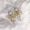Fashion Zinc Alloy Color Bowknot Hoop Earrings For Women Egirl Simple Metal Long Bow Pendant Earrings Aesthetic Y2K Zircon