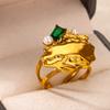 Inele Inimă cu Zircon Cristal Verde Vintage Pentru Femei Culoare Aur Oțel Inoxidabil Inel Deschis Modă Estetic Zircon Cadou Nuntă