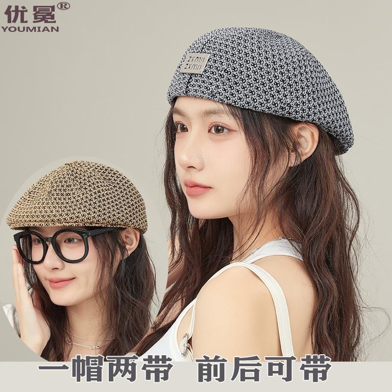 New beret women's summer hollow breathable face small painter hat letters versatile big head circumference hat tide