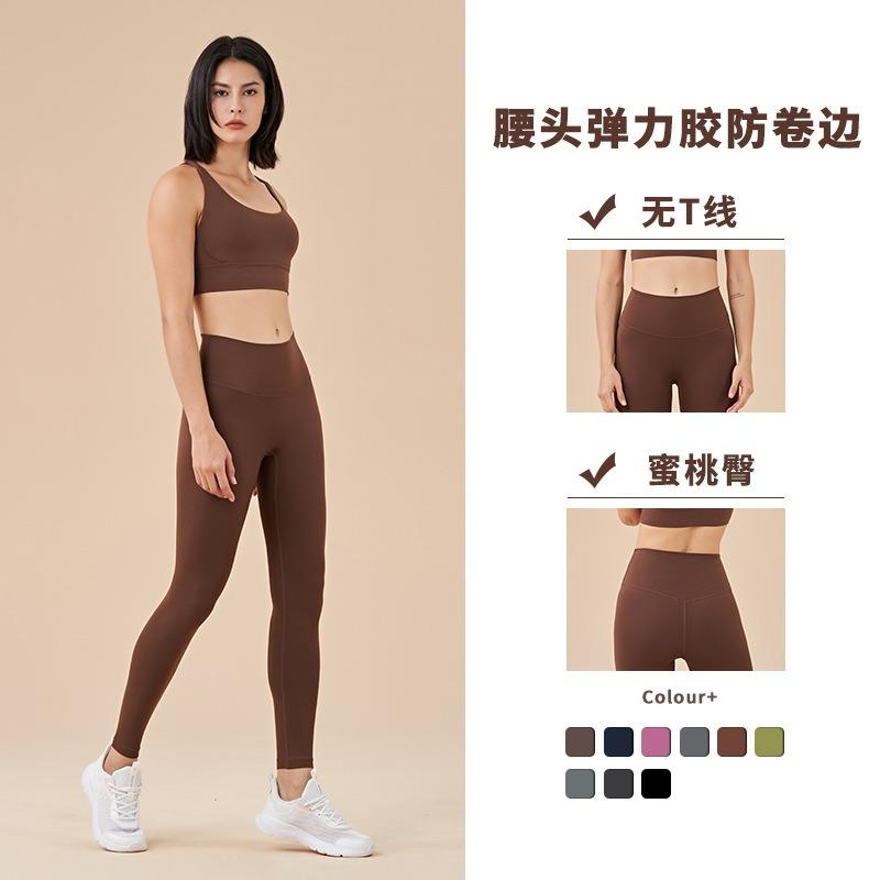 Autumn and winter nude fleece no embarrassment high waist anti-crimping yoga pants women's hip lift thickened thin velvet sports fitness pants