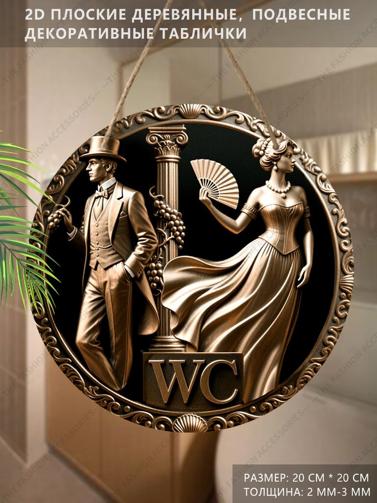 Semne decorative din lemn pentru agățat, decorațiune de perete sau ușă pentru baie, plan 2D cu textul „WC”, cadou de casă nouă pentru prieteni