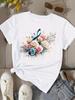 (Asian Size) flower floral trend T Shirt Fashion Women Tee Top Clothing Casual Printed Lady Female Graphic Short Sleeve T-shirts