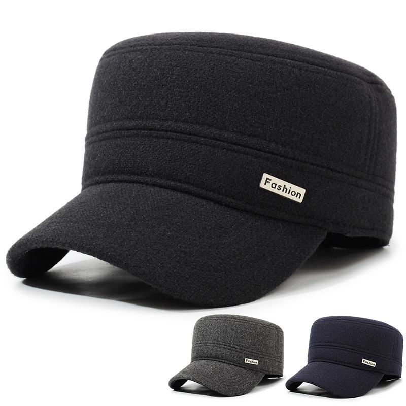 Autumn Winter Middle-Aged Hat Men's Cotton Flat Top Ear Protection Warm Baseball Cap