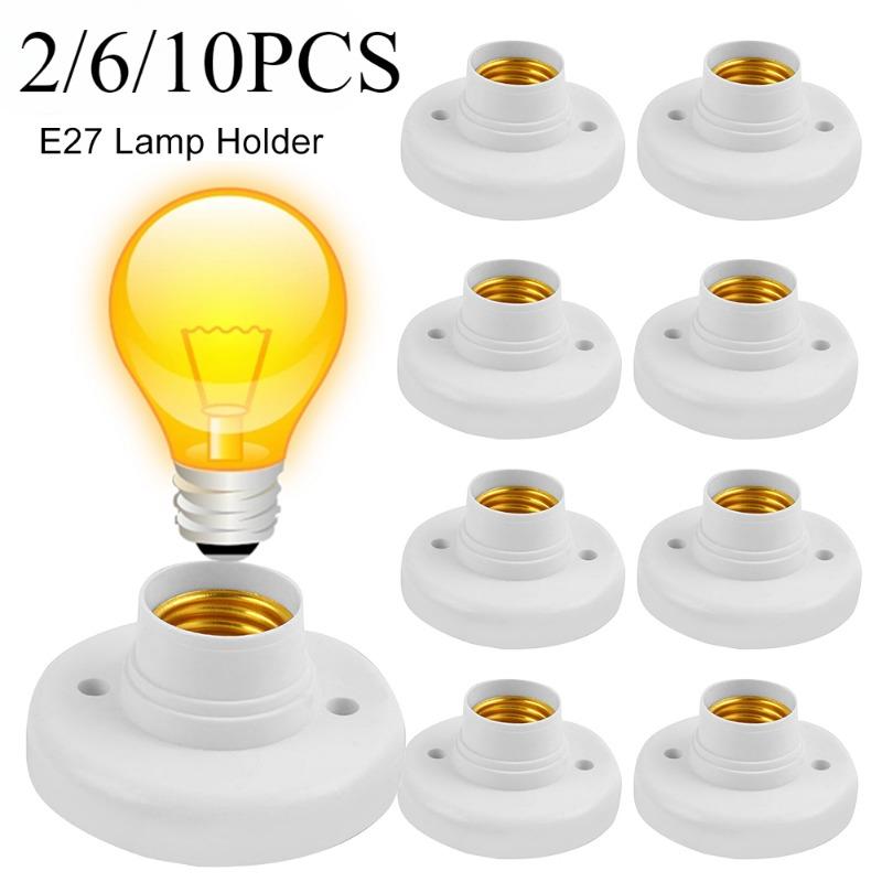 2/6/10PCS PC E27 Screw Cap Socket White Ceiling Light Lamp Bulb Fixing Base Stand Light Bulb Holder Spiral LED Bulb Base