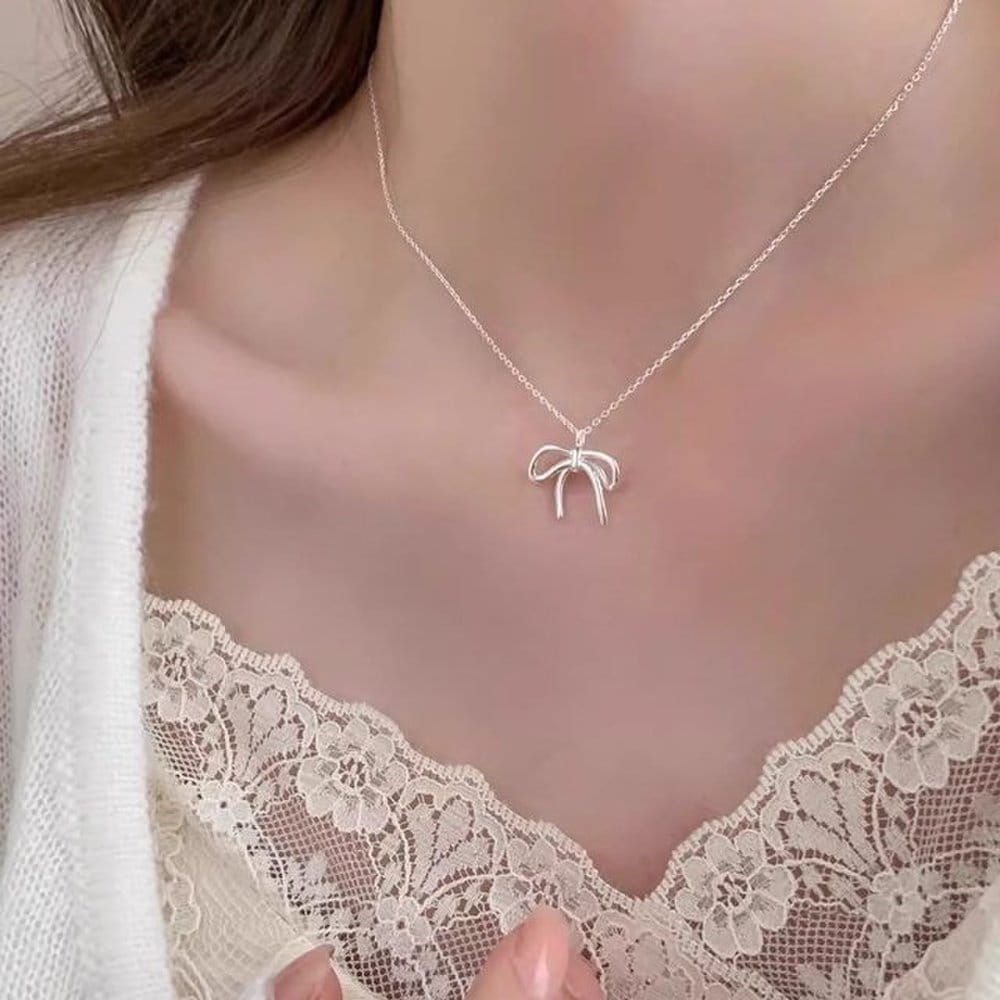 Silver Ribbon Pendant Romantic Necklace (Wffpieu)