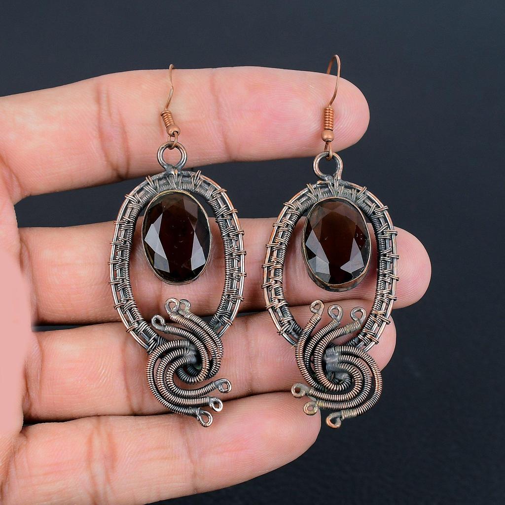 Smokey Topaz Earrings Gemstone Jewelry, 999 Copper Wire Wrapped Handmade Earrings, Latest Design Jewelry
