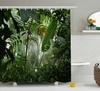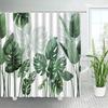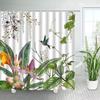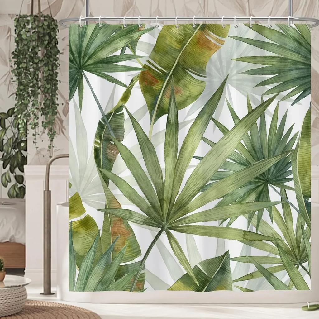 Tropical Plants Floral Shower Curtains Beige Green Palm Leaves Flowers Nordic Decor Bathroom Polyester Bath Curtain with Hooks