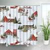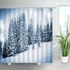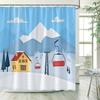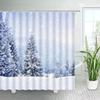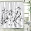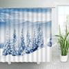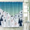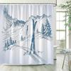 Set Cortină de Duș Schi de Iarnă, Cortine de Baie Moderne cu Stațiune de Schi, Munte Înzăpezit, Pădure de Pini, Albastru Decorațiuni de Crăciun pentru Baie