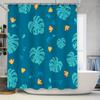 Blue Pattern Shower Curtain Home Decor Waterproof Bathroom Liner for Bathtub Tropical Leaves with Yellow Flowers Design (180x205