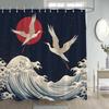 Japanese Landscape Shower Curtains Cherry Blossom Koi Fish Lotus Abstract Mountain Sea Waves Polyester Bathroom Decor with Hooks