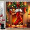 Vintage Fireplace Christmas Shower Curtains Xmas Tree Gift New Year Wall Hanging Home Bathroom Decor Polyester Fabric With Hooks