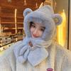 Bear hat women's winter versatile scarf integrated thickened cute cycling ear protection warm scarf three-piece set