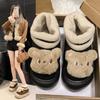 Fashion home fluffy warm cotton slippers 2025 autumn and winter new high-value cute bear fluffy slippers outer wear