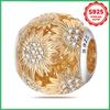 S925 Sterling Silver Plated K Gold Sunflower Beaded Sunshine Passion Sunflower Bead Accessories