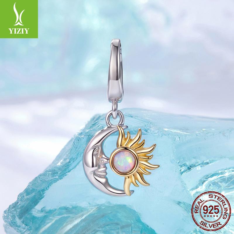 S925 Silver Opal Sun And Moon Opening And Closing Buckle Pendant Accessories Niche Plated K Gold Sun And Moon Beads