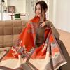 Autumn and winter advanced sense landscape flower language double-sided jacquard scarf women's light luxury warm thickened scarf versatile shawl