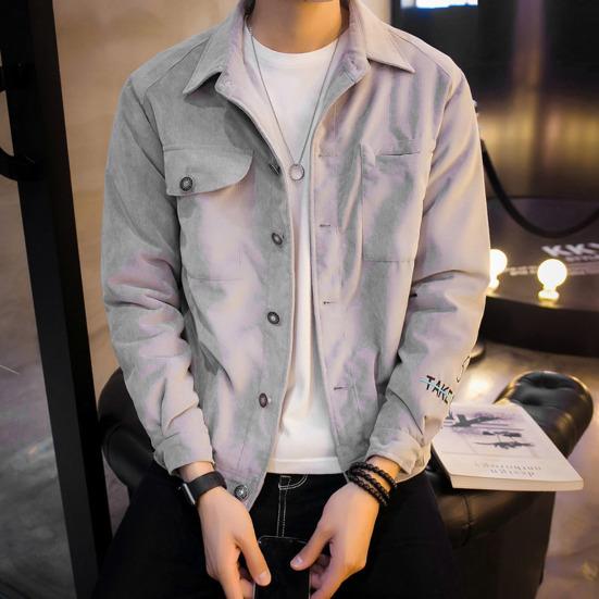 Jachetă cargo toamnă iarnă rever cu mânecă lungă, culoare solidă, din piele intoarsa, cu buzunare, inchidere cu nasturi, imbracaminte casual pentru barbati