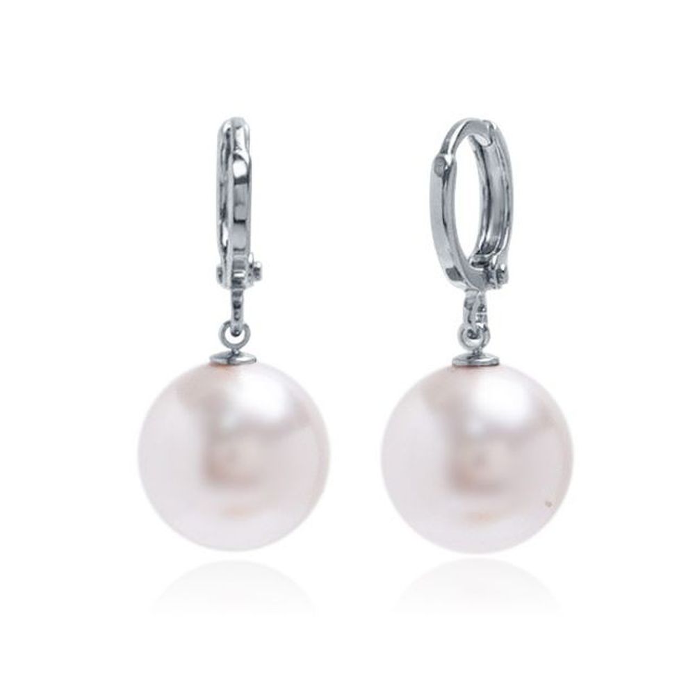 E478 12mm White Pearl Austrian One-Touch Earrings