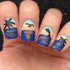 24x Short Square False Nail Coconut Tree Press On Nail Gradient Acrylic Nail Glossy Full Cover Stick on Nail for Woman