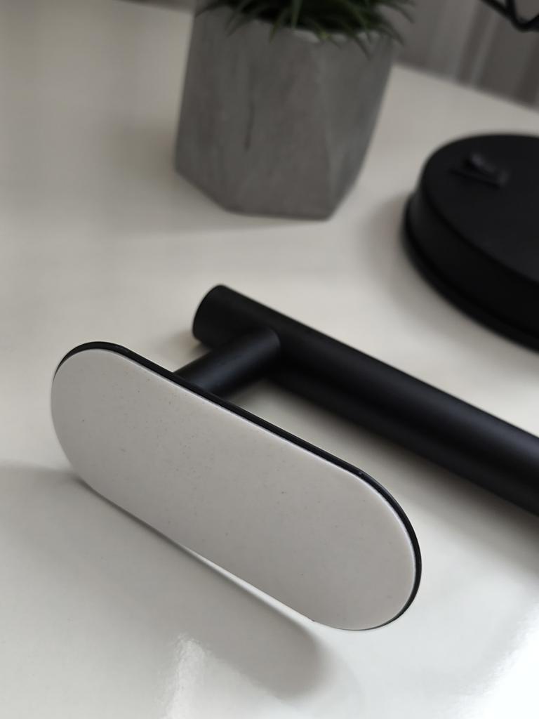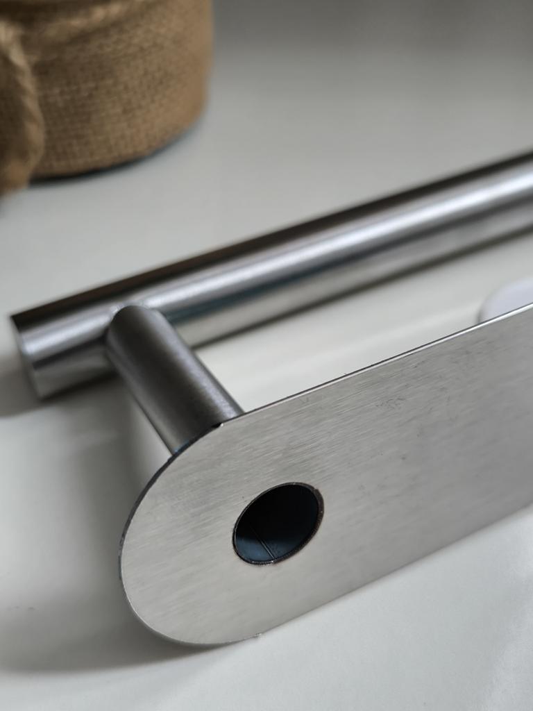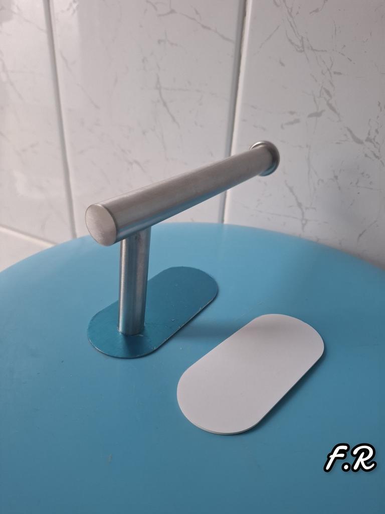 Suport de perete pentru hârtie igienică Linii curate, design minimalist. Calitate bună. Arată bine și solid. Se fixează cu bandă dublu adezivă. Suprafața de montare este suficient de mare și se ține ferm și nu cade.. Recomand 🤗