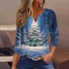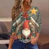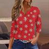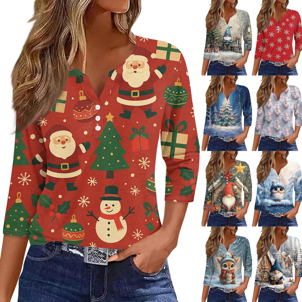 Women's Fashion Casual Christmas Print V-Neck Short Sleeve Decorative Button Three-quarter Sleeve T-shirt Top