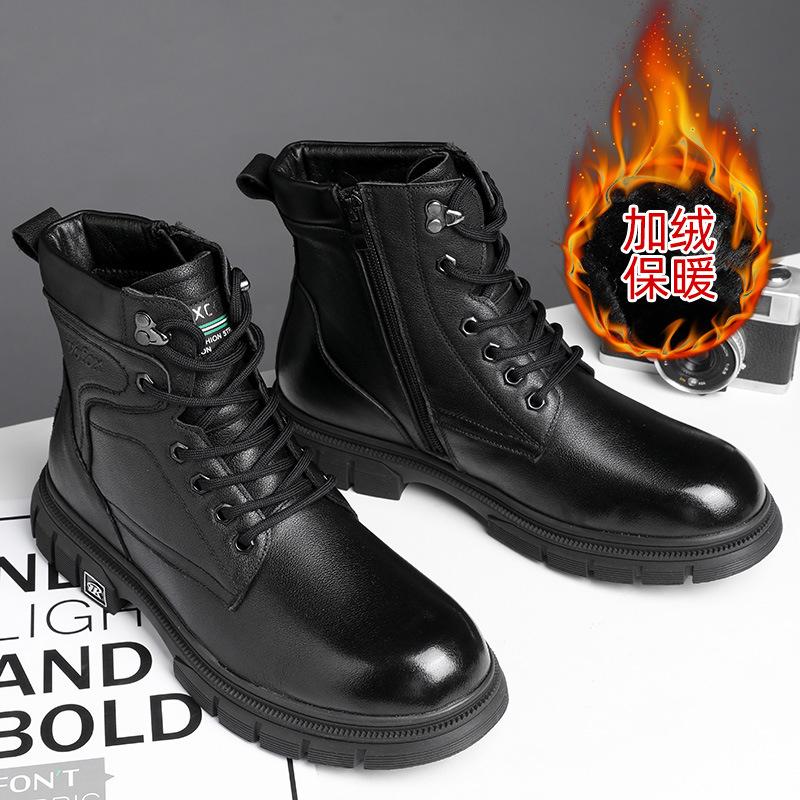 The first layer of cowhide men's Martin boots men's tooling style leather velvet thermal leather boots men's casual high-top men's shoes
