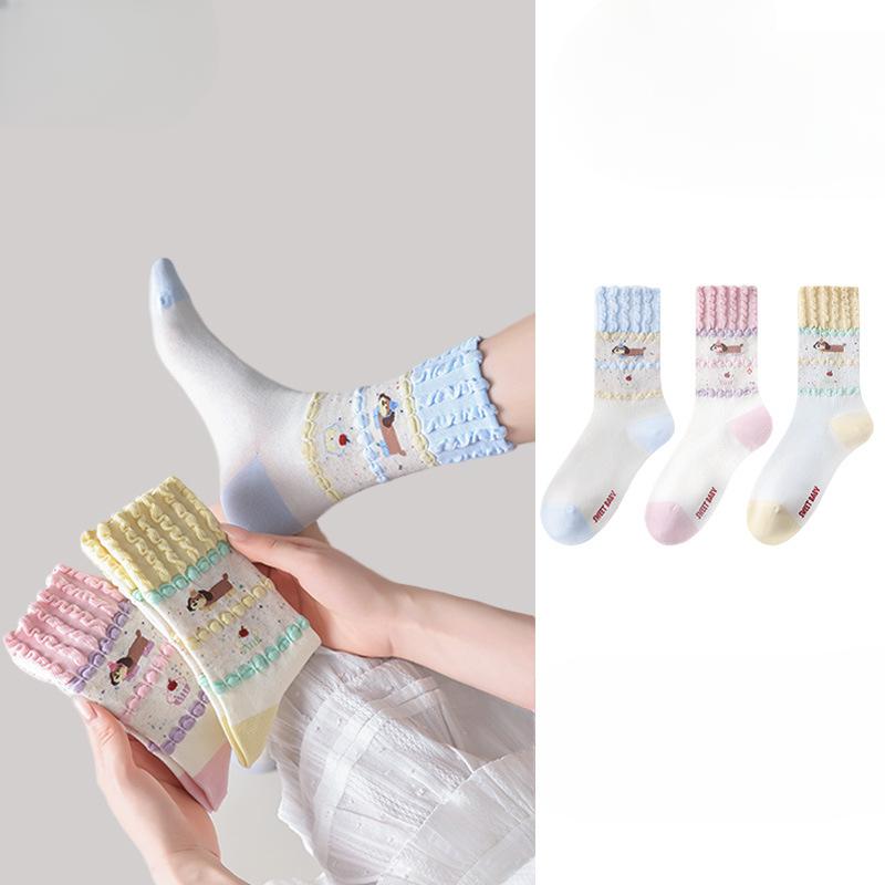Female Autumn and Winter New Cartoon Cute Lace Dachshund Dog Tube Cotton Socks