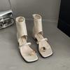 Design sense niche side zipper black 2025 new hollow thick heel sandals women's summer square head cool boots cover toe cool boots