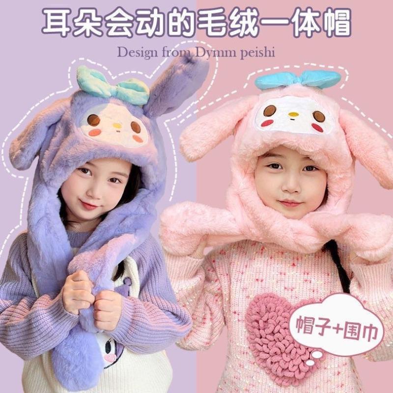 [Ears move] Winter new children's plush scarf one-piece hat cute cartoon airbag baby windproof hat