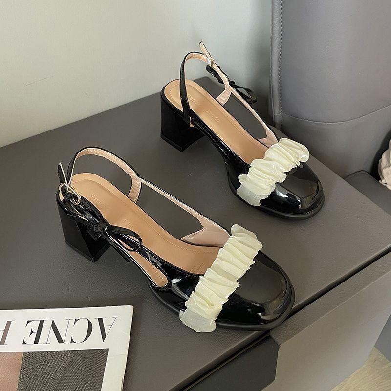 French design sense niche bow single shoes bag head sandals thick heel Mary Jane shoes women's 2025 summer and autumn new