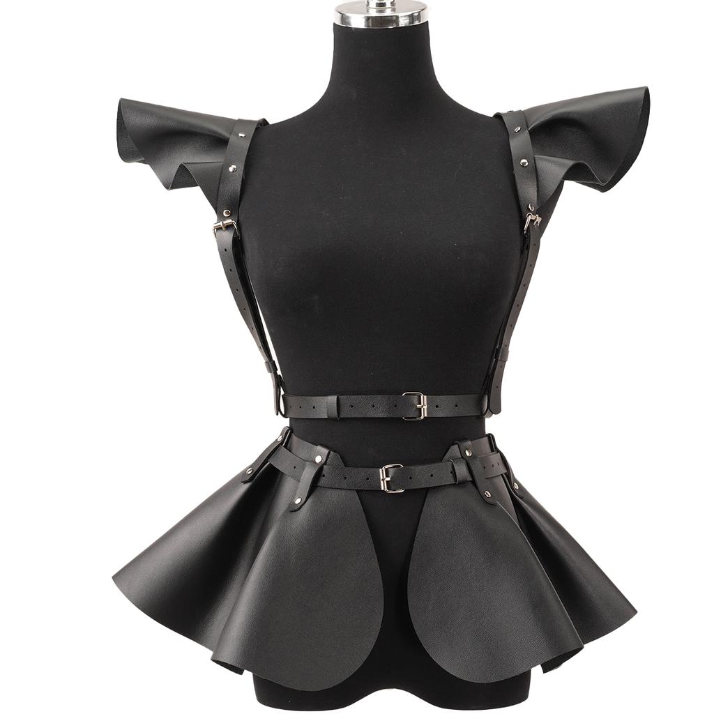 Costum cu volane la modă, Rochie din piele ecologică cu garnitură pe umeri, Accesorii de modă, Curea de damă cu garnitură pe umeri din piele ecologică Dr