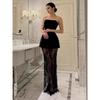 Tipsy Goddess House Same Style Pure Design Sense Black Lace Sexy Split off-Neck Tube Top Dress