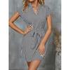 European and American Women clothes Sleeve Stripe Lace-up Dress Summer Casual Short dress Striped Lace up Dress