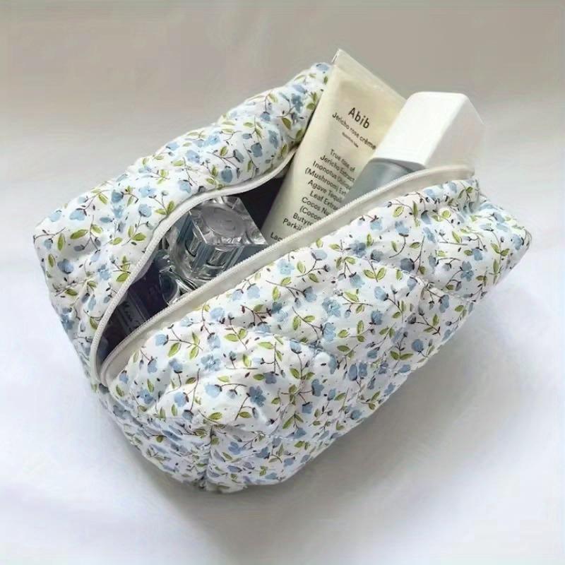 Organizator de depozitare geantă de machiaj matlasată florală, cu imprimeu cu flori, geantă mare pentru cosmetice de călătorie, accesoriu de machiaj