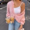 Cardigan Tricotat în Culori Bombon pentru Femei, Cardigan European și American de Toamnă și Iarnă în Culoare Solidă, Cardigan Pulover în Culori Macaron pentru Femei