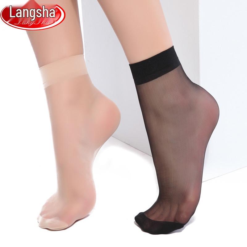 Langsha Women's Ultra-thin Transparent Silk Socks - Durable, Snag-resistant, Flesh Color, 5 Pairs