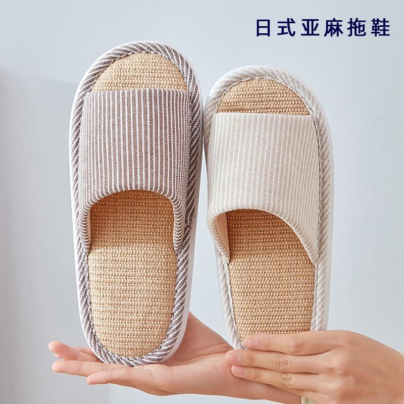 Japanese silent linen slippers spring and autumn four seasons living room wooden floor non-slip cotton and linen fabric slippers women's summer
