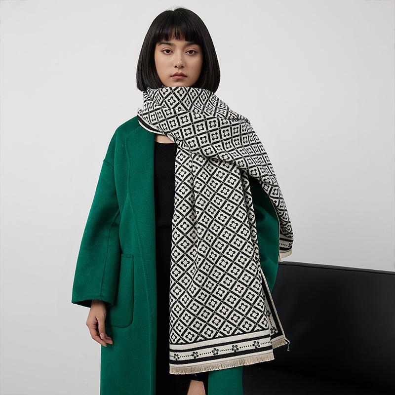 Winter Long Scarf Simple Flower Print Scarf Warm Neck Protection Scarf Versatile Cold Protection Shawl