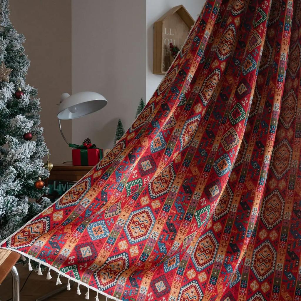 Perdele Stil Boem Jacquard Geometrice Ciucuri Perdea Finisată Valanță Bucătărie Dormitor Living Draperii Semi-opace