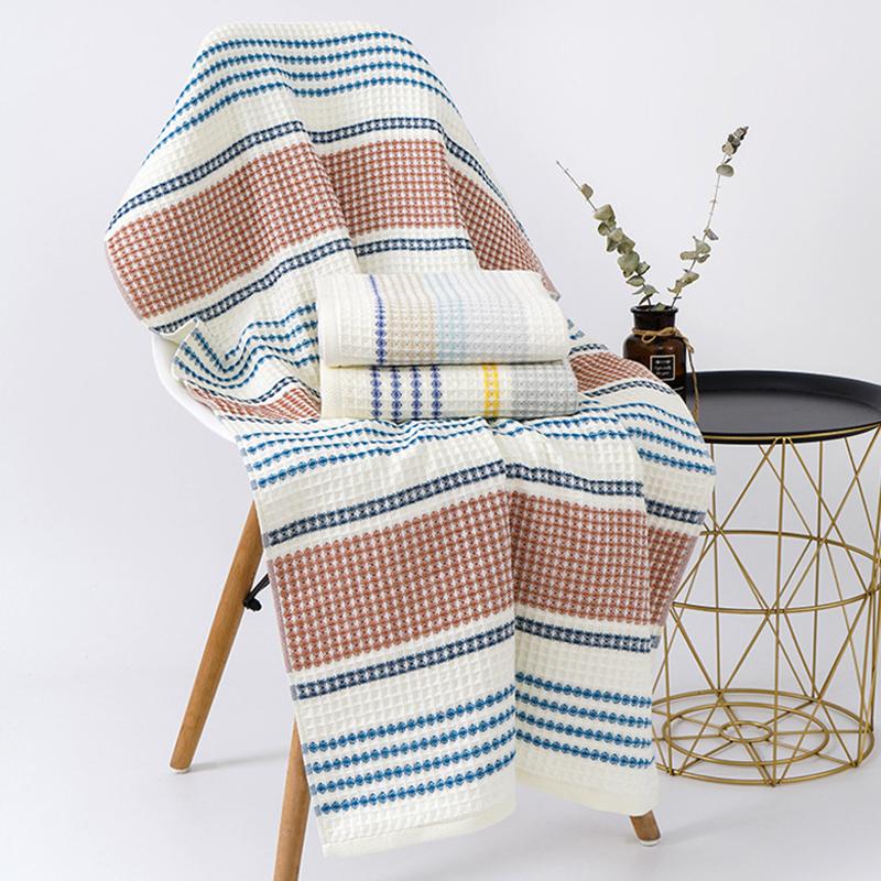 70X140Cm Thickened 100%Cotton Bathtowel Premium Striped Waffle Towel Adultkids Home Super-Soft Absorbent Not Shedding Hair Towel