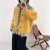 Autumn and winter loose round neck horn buckle knitted cardigan new plush knitted sweater jacket women