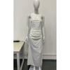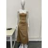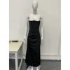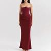 2025 European and American Spring Summer New Waist Hugging Sheath Long dress Satin Tube Top Pleat Patchwork One piece Dress Women clothing