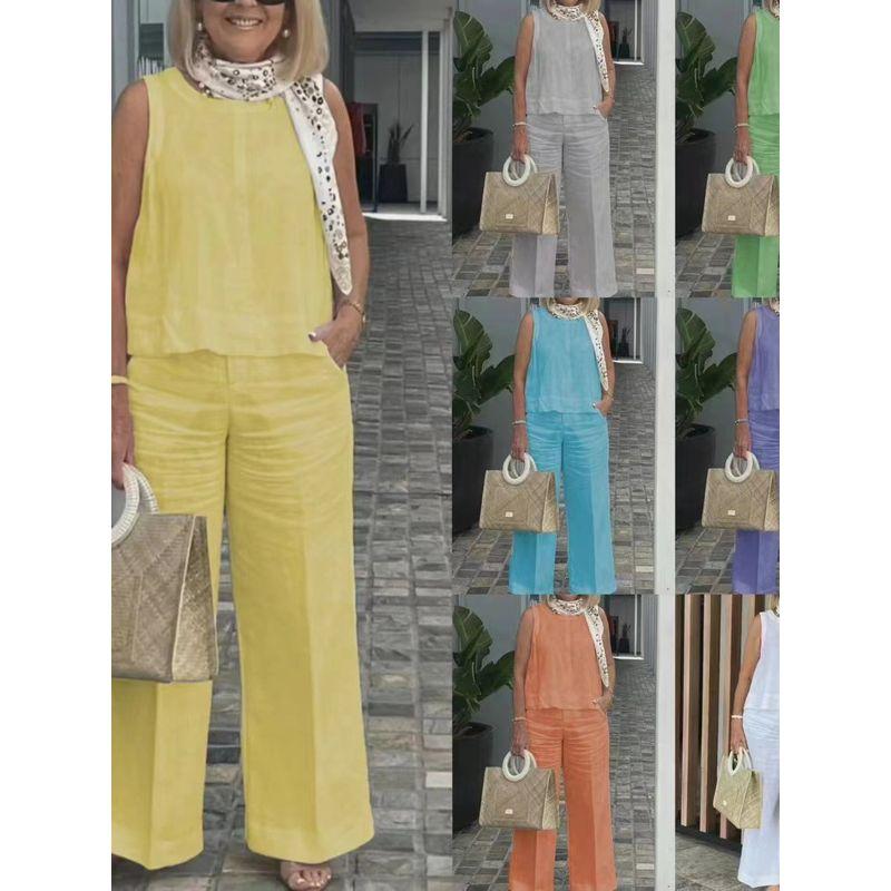 Sleeveless Top and Wide Leg Pants Set Sleeveless Tops Wide Leg Pants Suit