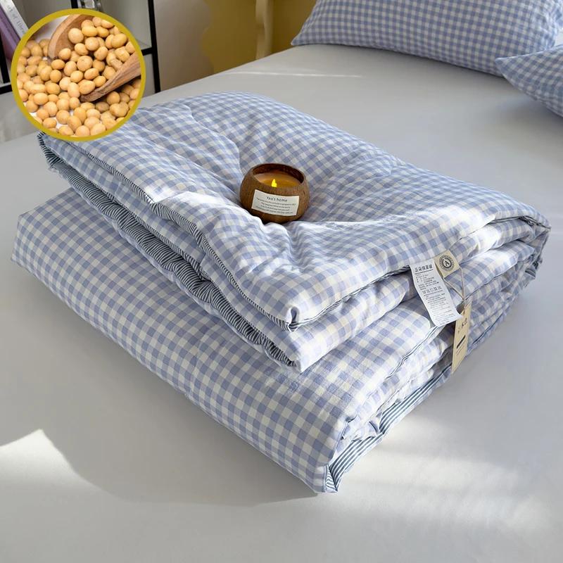 Cotton Summer Quilt Air Conditioning Quilt Soybean Fiber Filling Thin Comforter Nordic Ins Style Duvet Blanket Bed Four Seasons