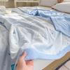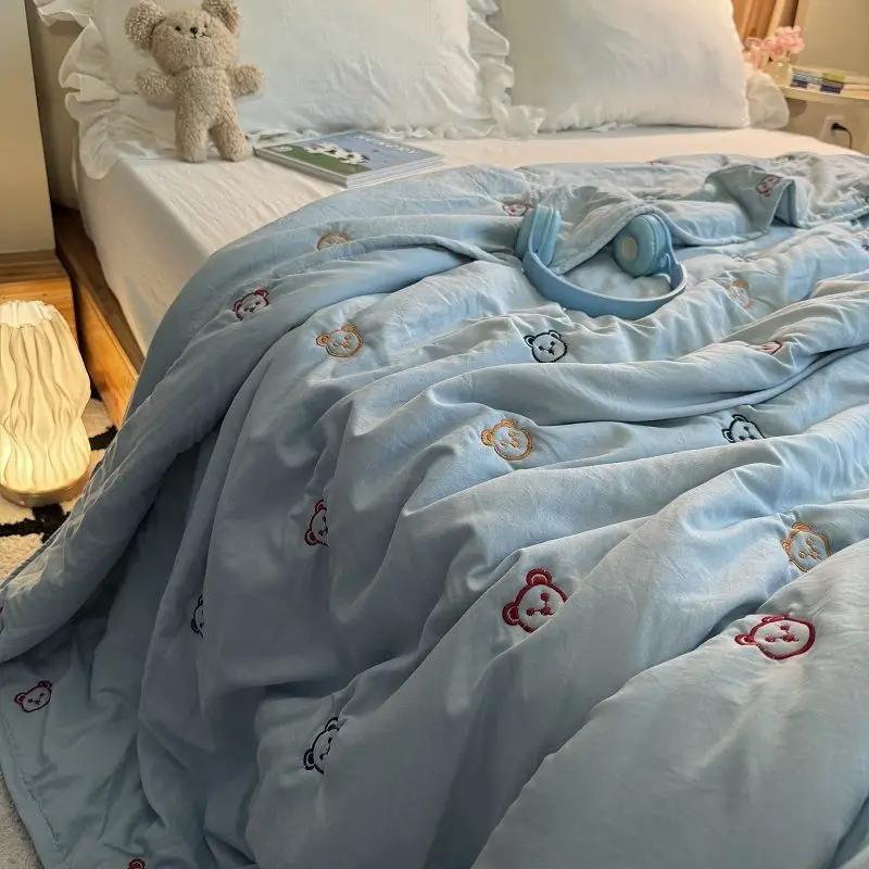 Blue Thin Quilt Soft Summer Air-Conditioned Four Seasons Comforter With Embroidery Machine Washable Single Queen Size Blanket