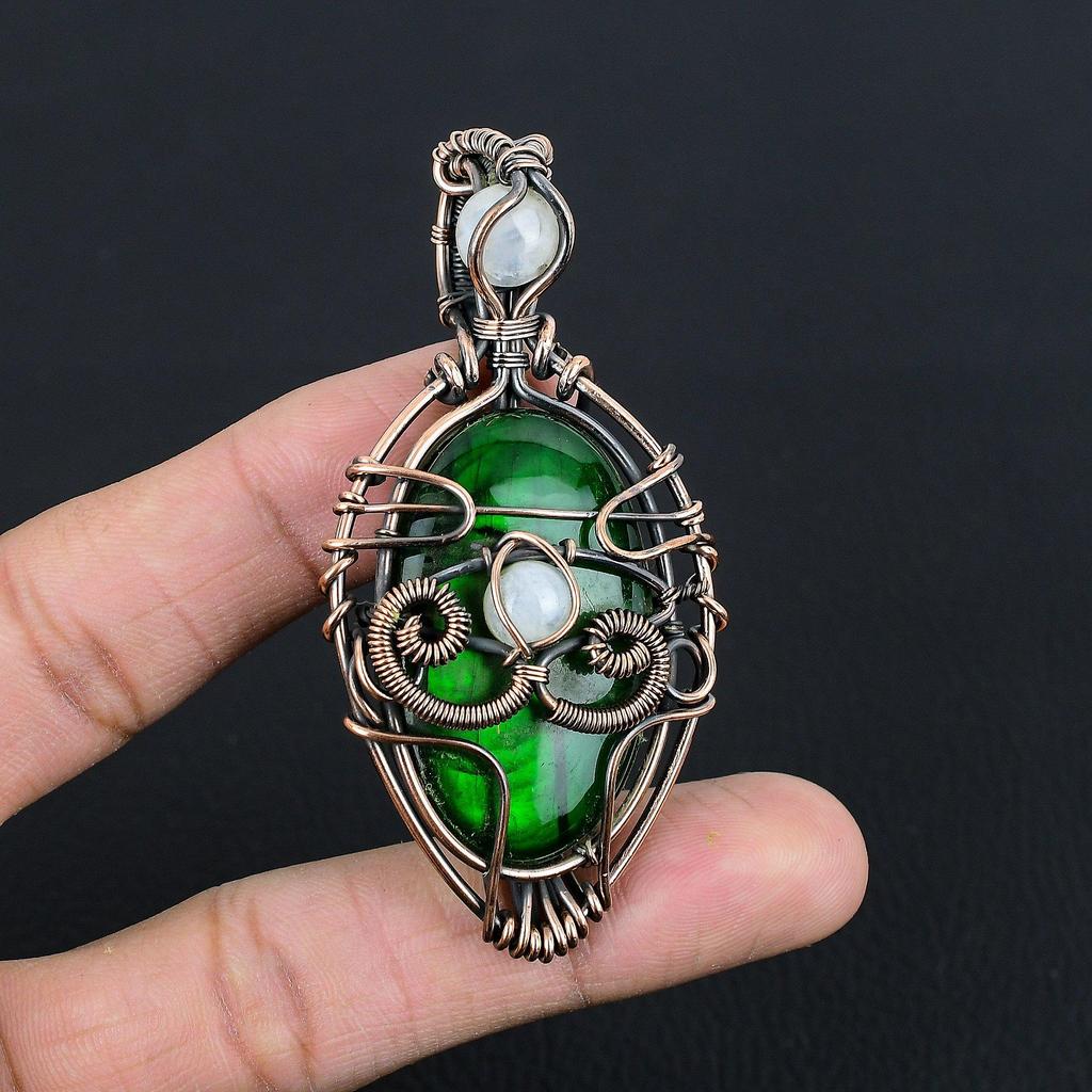Pandantiv Labradorit Green Flash Bijuterii cu Pietre Prețioase, Pandantiv Înfășurat cu Sârmă de Cupru 999, Bijuterii Handmade Pandantiv Piatră Natală, Cadou Pentru El