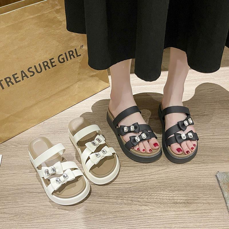 Thick-soled slippers wear summer new bows with skirts, comfortable one-word sandals, large size.