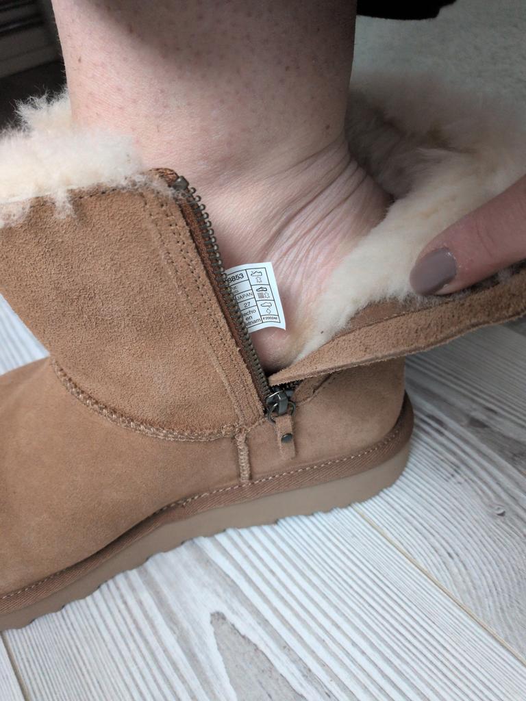 UGG Ghete de zăpadă scurte clasice Mini din piele de oaie călduroasă cu fermoar pentru femei, castaniu 1118853-CHE