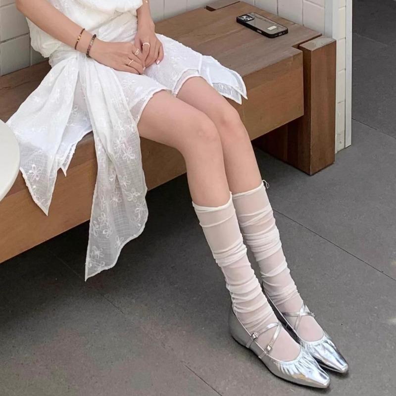 Ballet socks summer thin girl breathable mesh stacking socks calf white thin tube